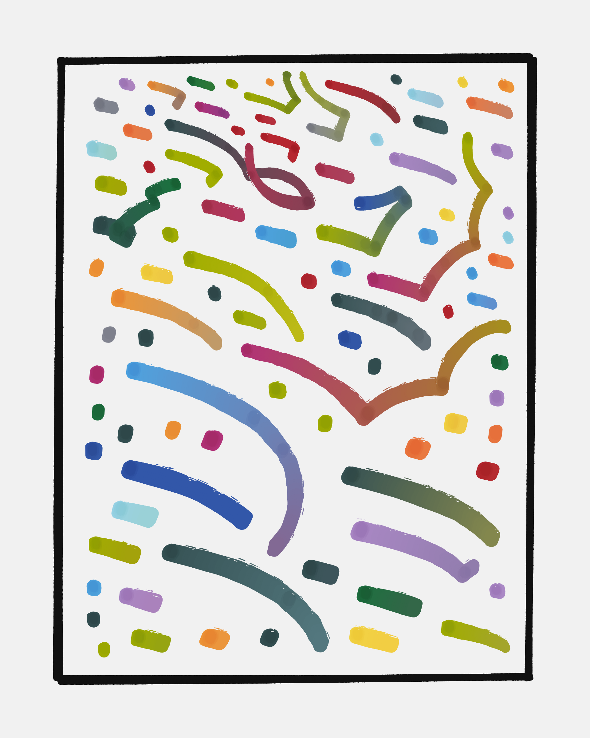 “𝙸 𝚊𝚖 𝚒𝚗𝚝𝚛𝚒𝚐𝚞𝚎𝚍 𝚠𝚒𝚝𝚑 𝚝𝚑𝚎 𝚜𝚑𝚊𝚙𝚎𝚜 𝚙𝚎𝚘𝚙𝚕𝚎 𝚌𝚑𝚘𝚘𝚜𝚎 𝚊𝚜 𝚝𝚑𝚎𝚒𝚛 𝚜𝚢𝚖𝚋𝚘𝚕𝚜 𝚝𝚘 𝚌𝚛𝚎𝚊𝚝𝚎 𝚕𝚊𝚗𝚐𝚞𝚊𝚐𝚎. 𝚃𝚑𝚎𝚛𝚎 𝚒𝚜 𝚠𝚒𝚝𝚑𝚒𝚗 𝚊𝚕𝚕 𝚏𝚘𝚛𝚖𝚜 𝚊 𝚋𝚊𝚜𝚒𝚌 𝚜𝚝𝚛𝚞𝚌𝚝𝚞𝚛𝚎, 𝚊𝚗 𝚒𝚗𝚍𝚒𝚌𝚊𝚝𝚒𝚘𝚗 𝚘𝚏 𝚝𝚑𝚎 𝚎𝚗𝚝𝚒𝚛𝚎 𝚘𝚋𝚓𝚎𝚌𝚝 𝚠𝚒𝚝𝚑 𝚊 𝚖𝚒𝚗𝚒𝚖𝚞𝚖 𝚘𝚏 𝚕𝚒𝚗𝚎𝚜, 𝚝𝚑𝚊𝚝 𝚋𝚎𝚌𝚘𝚖𝚎𝚜 𝚊 𝚜𝚢𝚖𝚋𝚘𝚕. 𝚃𝚑𝚒𝚜 𝚒𝚜 𝚌𝚘𝚖𝚖𝚘𝚗 𝚝𝚘 𝚊𝚕𝚕 𝚕𝚊𝚗𝚐𝚞𝚊𝚐𝚎𝚜, 𝚊𝚕𝚕 𝚙𝚎𝚘𝚙𝚕𝚎, 𝚊𝚕𝚕 𝚝𝚒𝚖𝚎𝚜.”'Automatism' is inspired by the practice of artists where they are given a writing implement and a blank surface, and they go freestyle, almost mindlessly filling up the space with whatever comes to their minds and out of their hands. I've often wondered where a machine's mind and "hand" would wander given the same opportunity.This project explores the age-old computer art phenomenon of inviting the viewer to actively participate in the interpretation of the visual output. The way "Sharp-E" draws the strokes is through a mix of various movements — irregular curves, straight lines, sudden changes in direction — in a classic random walk algorithm, while avoiding overlaps with previously drawn strokes. There are no pre-programmed forms per se, but nevertheless it can be common for the viewer to perceive images, symbols, meaning in the generated output.So where does your mind wander? What forms, symbols, and meaning do you see?Controls: • 'D' toggles pausing/drawing or continues space-filling after the first stop (if available) • 'R' reassembles the piece (This automatically happens every minute) • 'S' saves the output