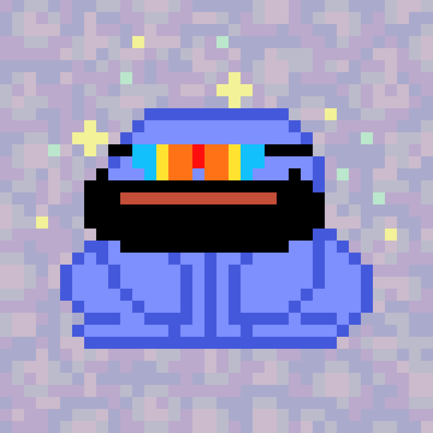 gremplin“Gummy Toadz against Universe Foam, like this one and #5030, take on a unique look compared to the rest of the collection -- they gain a nice brightness that plays off whatever mood the specific toad is putting out. In this case, a gruff Chad of a toad floats peacefully at the end of time. The Universe Foam background came from a custom toad for an early supporter that was into Sailor Moon, and these colors with a bubbly texture I made reminded me of the idea of Quantum Foam, which seemed like a good substrate for a toad. It also spawned the regular Grey Foam, which is just a sort of static buzzing, an opposite to the happy popping Universe Foam.”