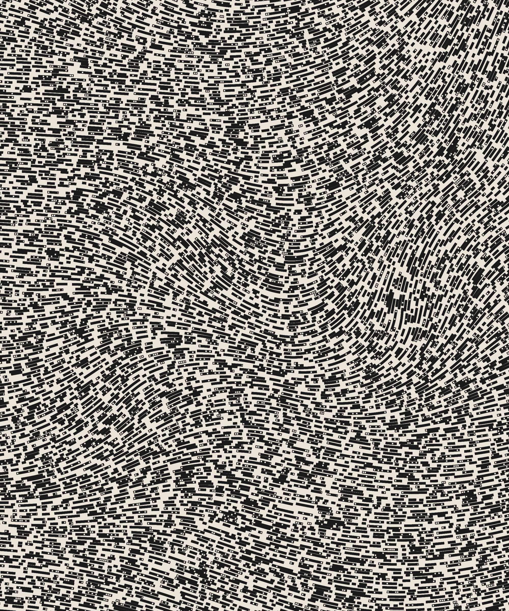 “We love mono colored outputs, and #479 is the ultimate piece in the Fidenza collection. One of just two "Black" palette micros, #479 is reminiscent of static created in analog televisions. It's another example of just how versatile the algorithm is.”