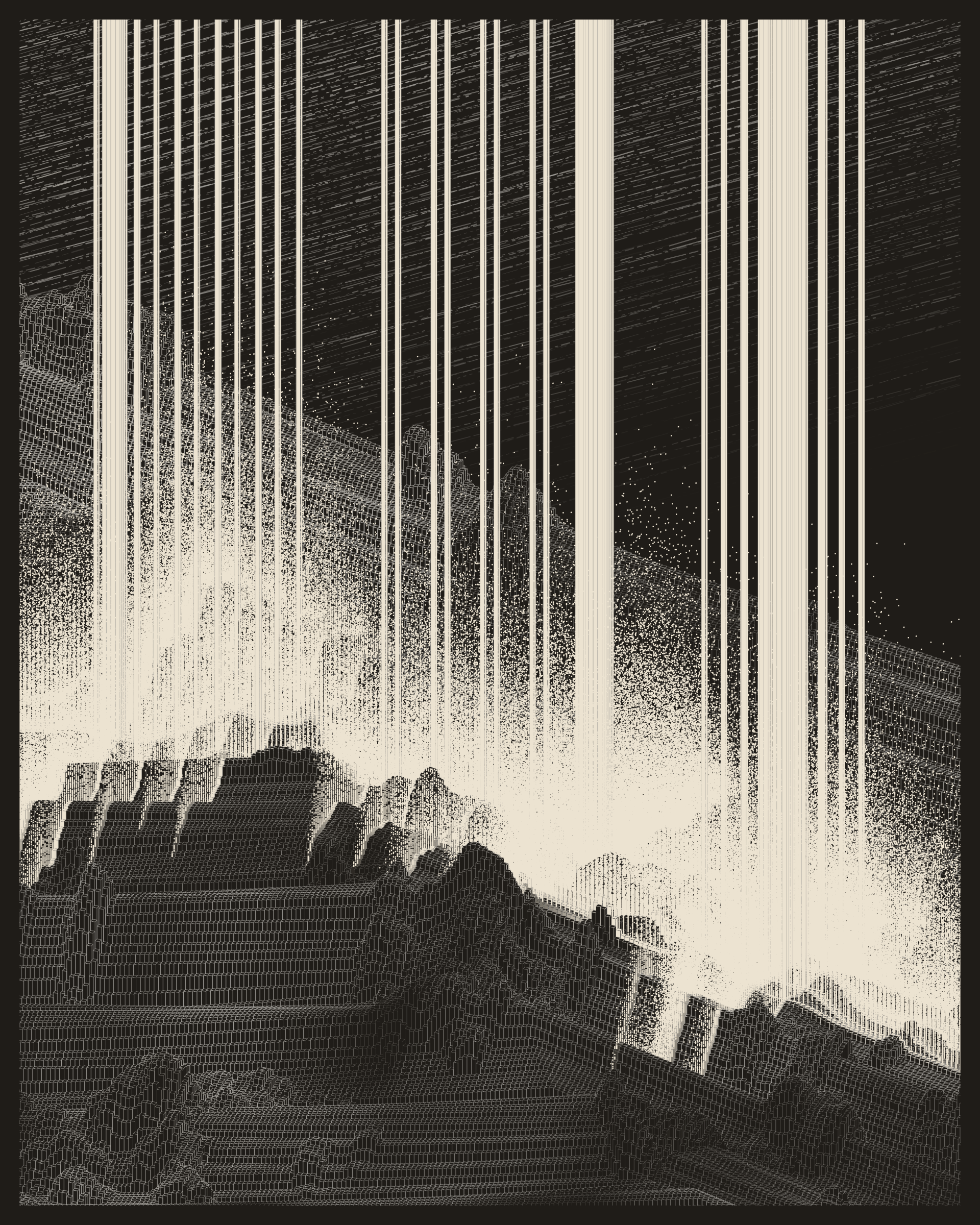 per kristian stoveland“A squadron of three harvesters line up in #53, giving the impression of a curtain draping the landscape. It has a "Nostromo" palette which I used heavily during testing before adding color, so the palette has a special place in my heart.”