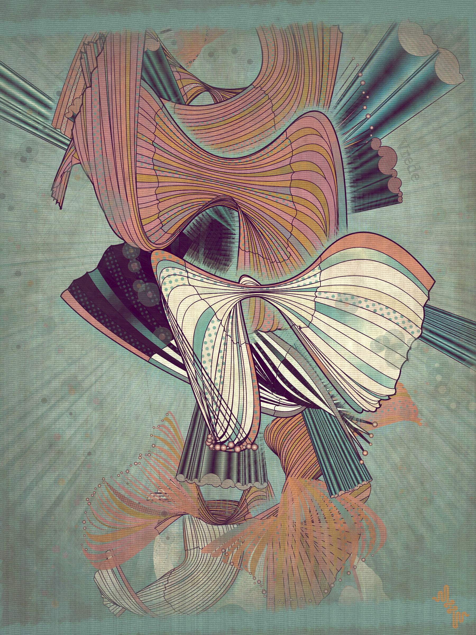 harvey rayner“Explosive dynamic movement in this one. Every Velum has the word peace written somewhere on the canvas in one of 33 languages. In some outputs these words are obscured, but Vrede (Dutch for peace or freedom from war) is clearly visible here. This output has a very high center of gravity with the closest curtains being at the top, with the full length of the canvas being used to progressively step layers away from the viewer as we move to the bottom.”